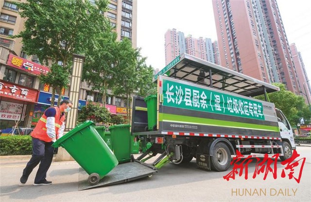 湖南日報·新湖南客戶端5月12日訊 (通訊員 羅展 黃珂嵐)5月11日,在長沙縣星沙街道金甲坪社區鳳凰城小區,一輛可裝載21桶廚余垃圾的專用運輸車駛入小區廚余垃圾收運點,由工作人員對廚余垃圾收納桶拍照記錄,以核對各街道廚余垃圾收運情況。核對完成后,廚余垃圾專用運輸車收運滿垃圾桶,又將干凈無異味的專用垃圾桶放置小區暫存點。