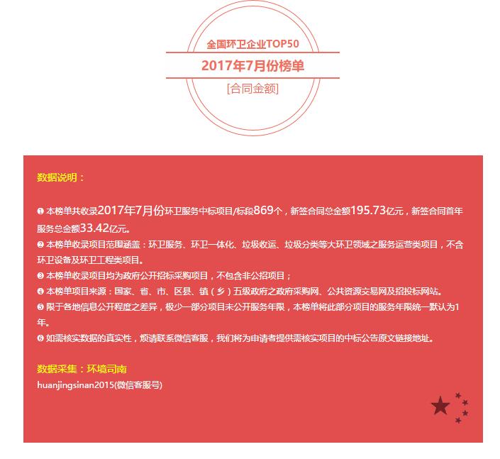 全國環(huán)衛(wèi)企業(yè)TOP50公布,公司榮膺第十五名