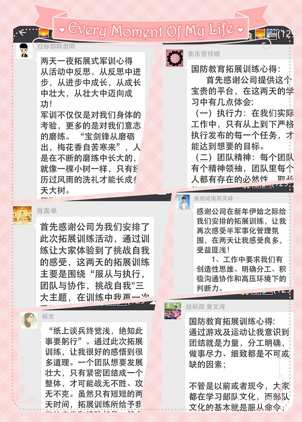 兩天一晚的拓展訓(xùn)練,在總經(jīng)理鄒修陽(yáng)的帶領(lǐng)下,團(tuán)隊(duì)完成了巜極速60秒》 巜畢業(yè)墻》 巜信任背摔》 《仙人指路》《動(dòng)力圈》等項(xiàng)目,堅(jiān)強(qiáng) 、勇敢、拼搏、智慧、團(tuán)結(jié)、擔(dān)當(dāng)、信念、信任、感恩等不斷得以彰顯。在市場(chǎng)競(jìng)爭(zhēng)的壓力與殘酷考驗(yàn)中,無(wú)論有多少競(jìng)爭(zhēng)對(duì)手,無(wú)論競(jìng)爭(zhēng)對(duì)手有多么強(qiáng)大,我們都要堅(jiān)定一個(gè)信念,那就是我們團(tuán)結(jié)在一起,一定可以創(chuàng)造任何奇跡!
